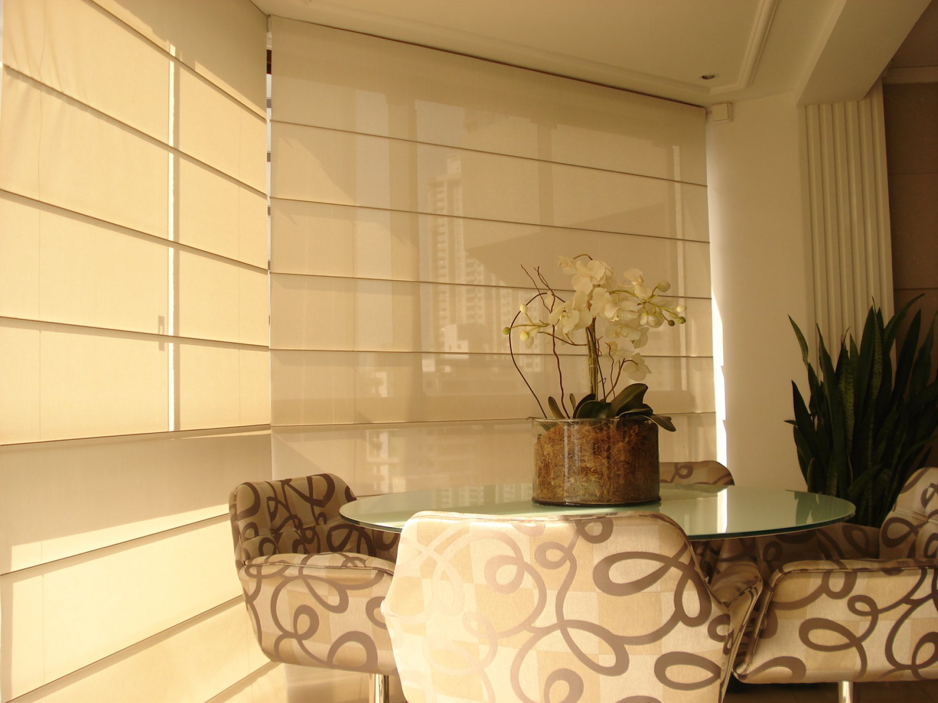 Projeções de Sala de jantar Persianas, cortinas e toldos produzidos pela Ipê